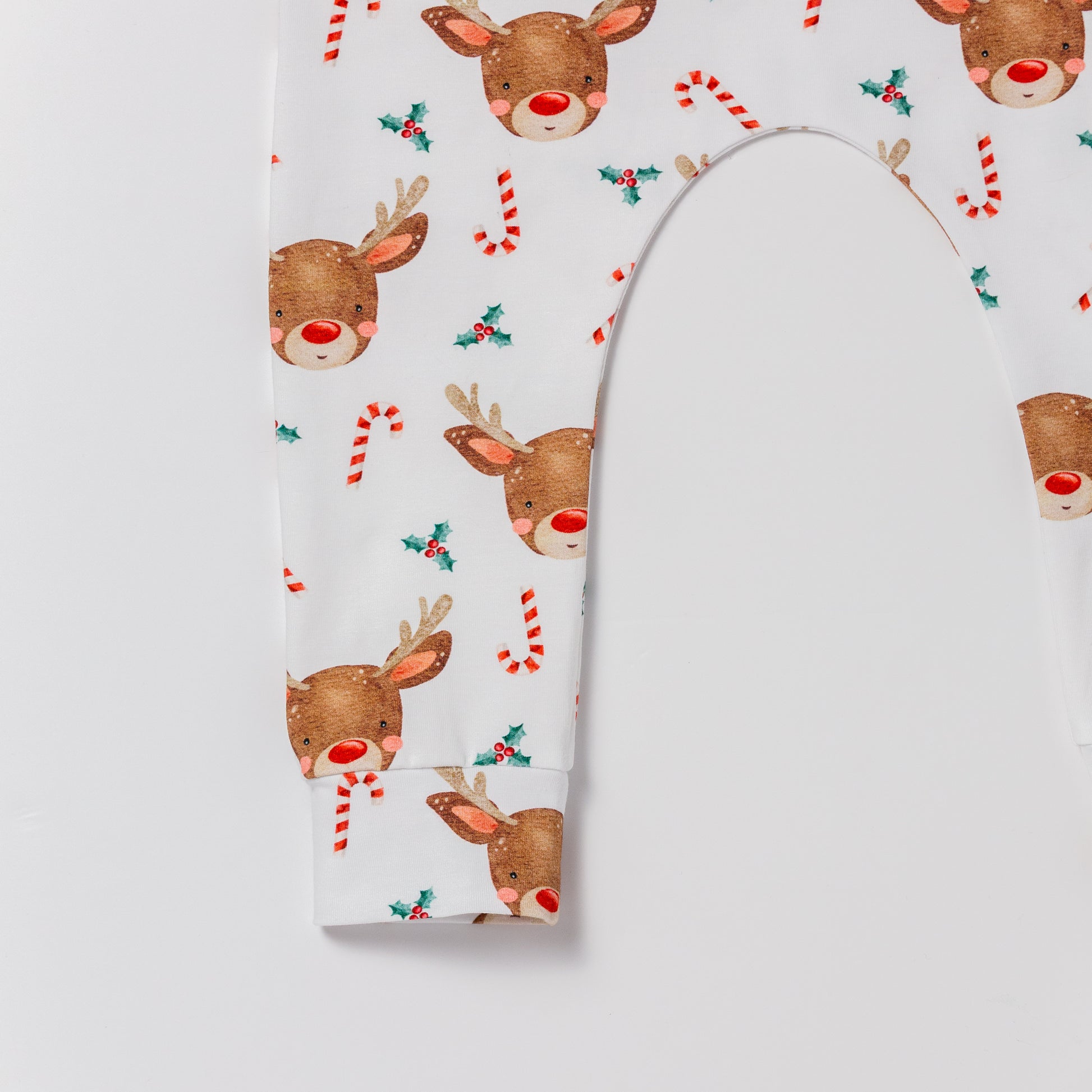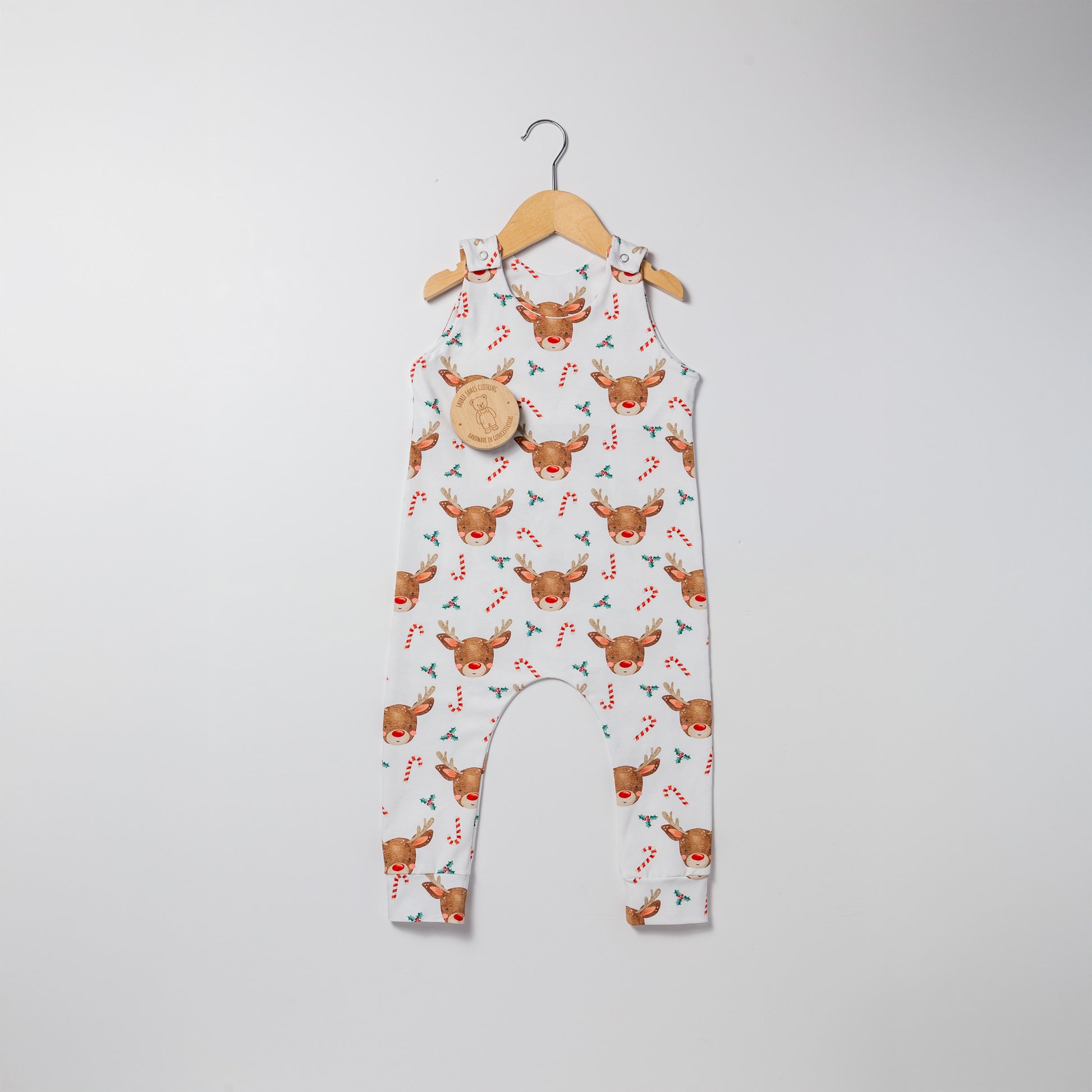 A festive reindeer design makes for a fun and easy to wear romper which is perfect for Christmas. Each romper is semi lined with the cuffs matching the lining.
