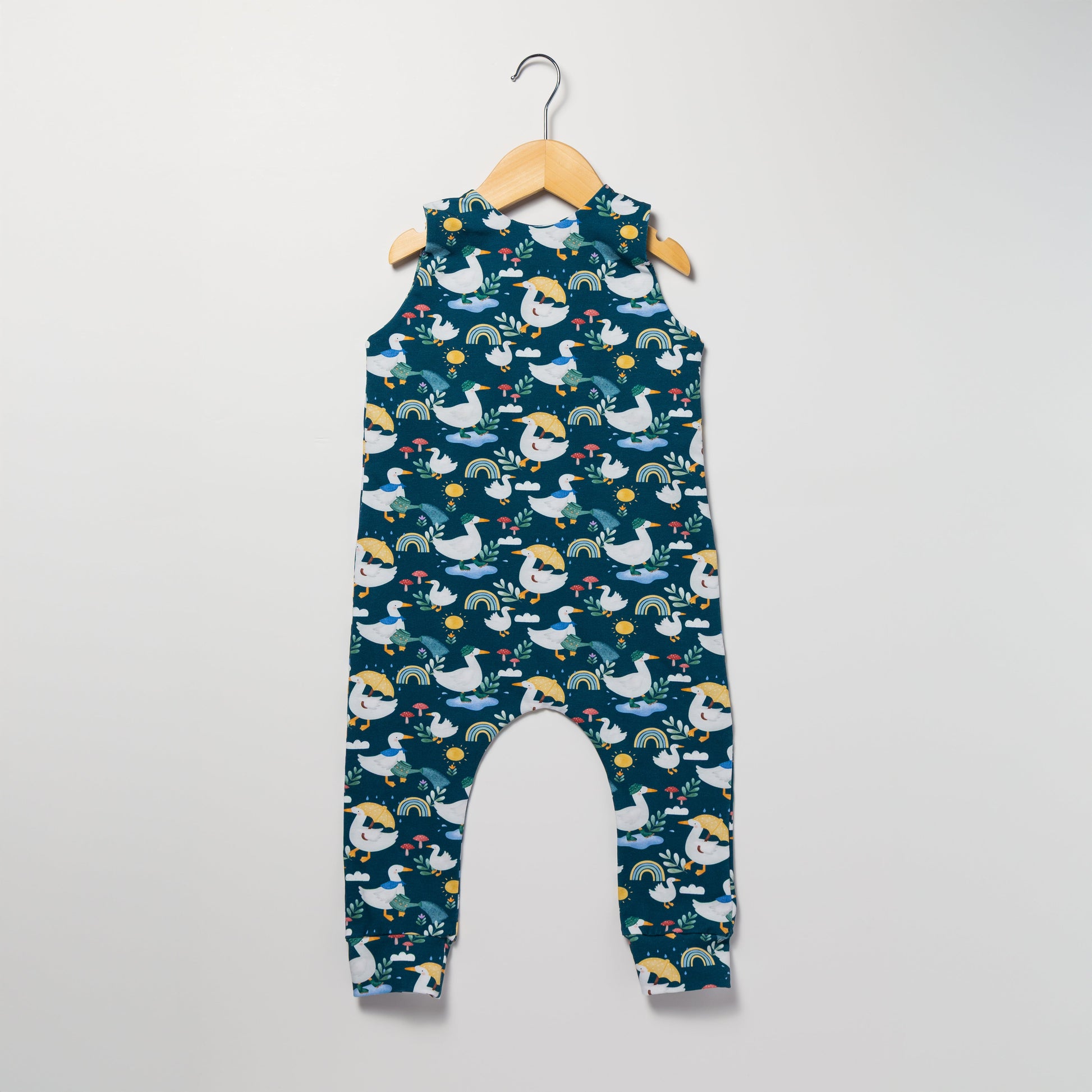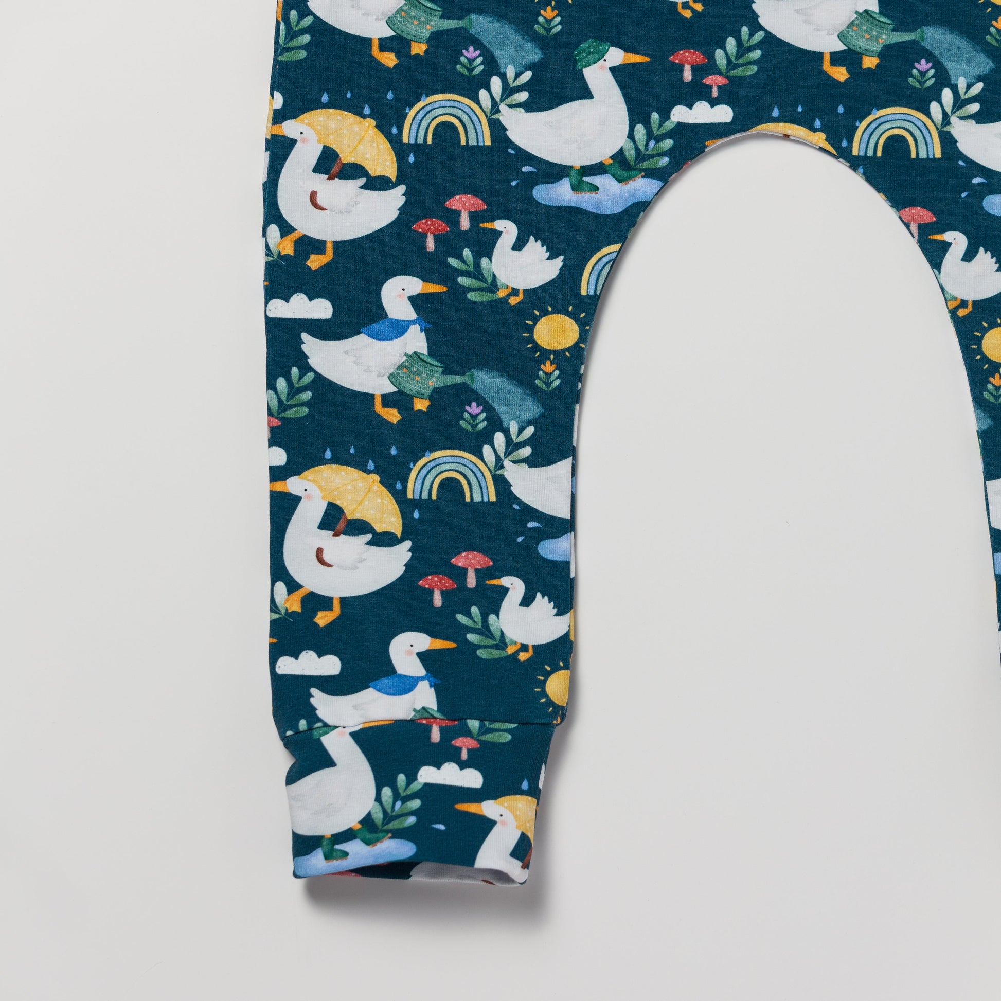 A puddle jumping geese design makes for a fun and easy to wear romper which is perfect for everyday use, special occasions and baby shower gifts. Each romper is semi lined with the cuffs matching the lining.